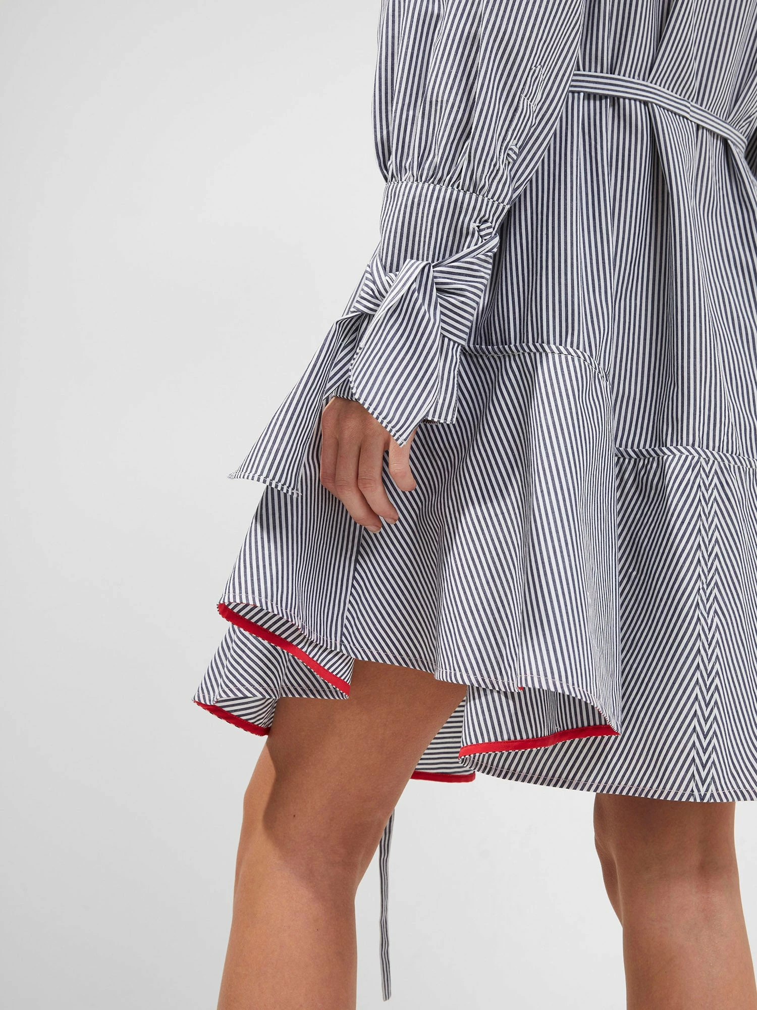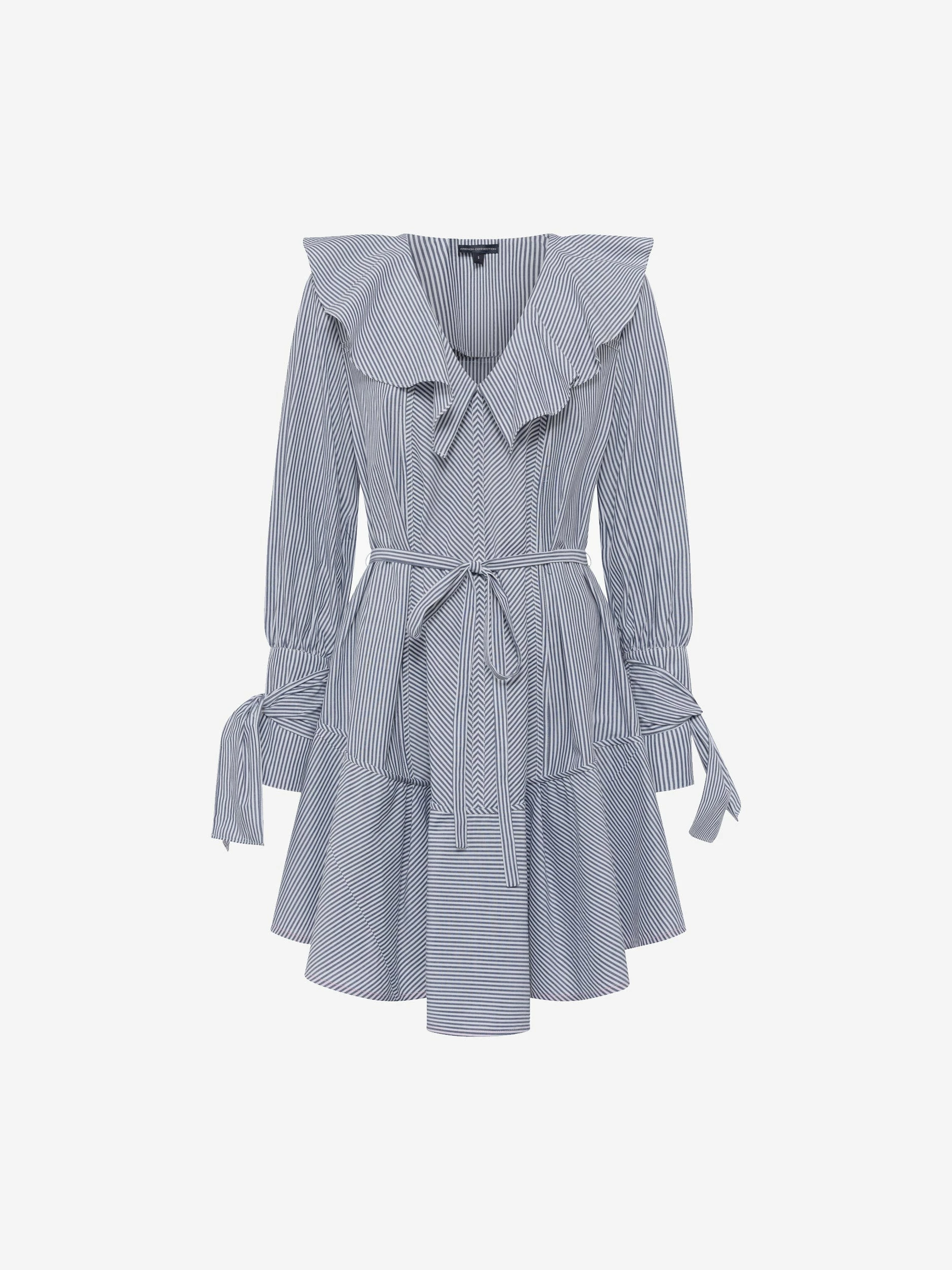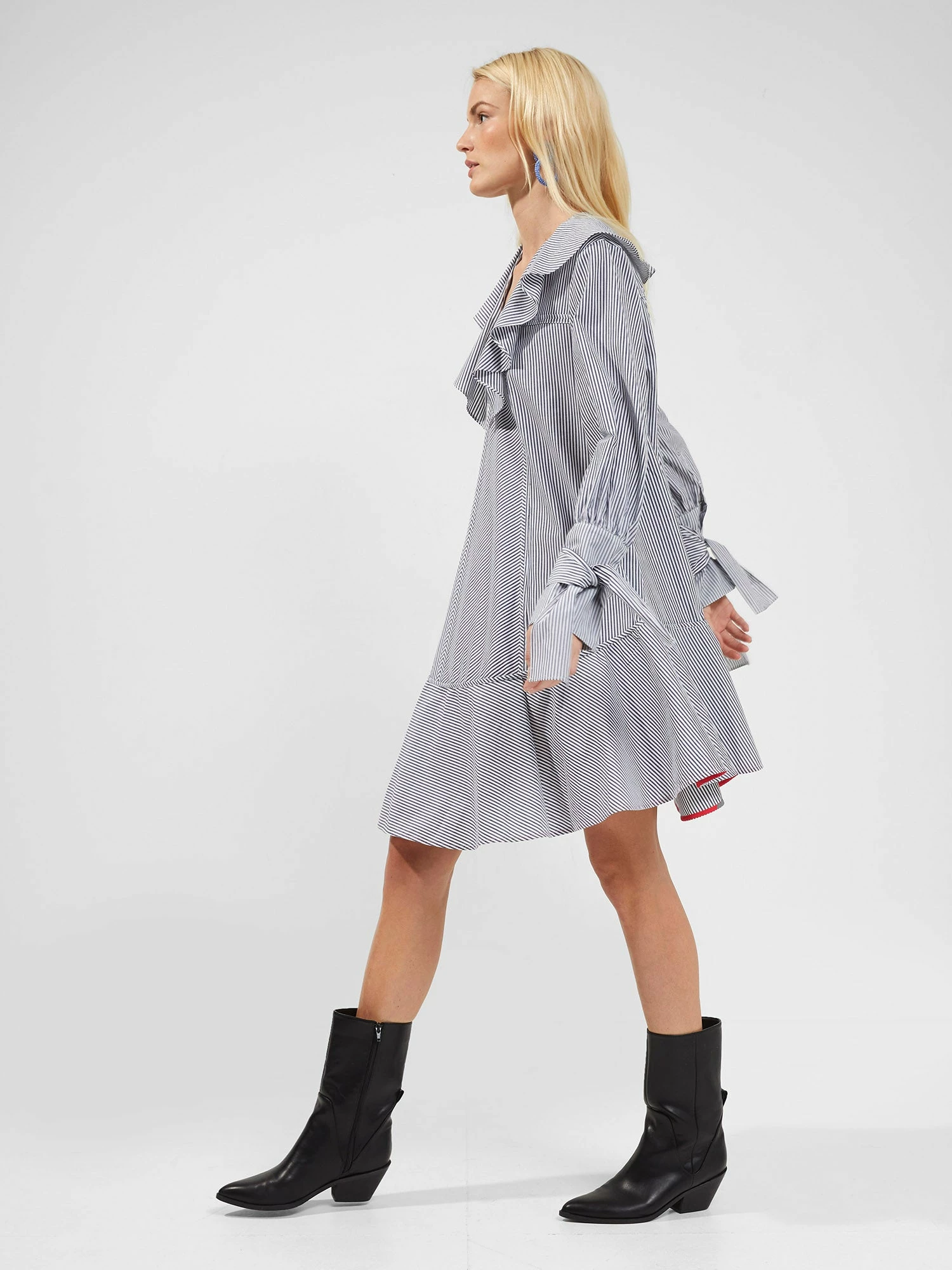 We’re all tied up in a romantic relationship with the Acantha Striped V-Neck Dress. Designed with a ruffled V-neck, self-tie accents at the sleeves and A-line hem.