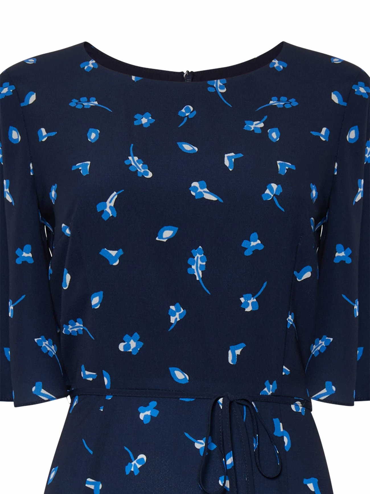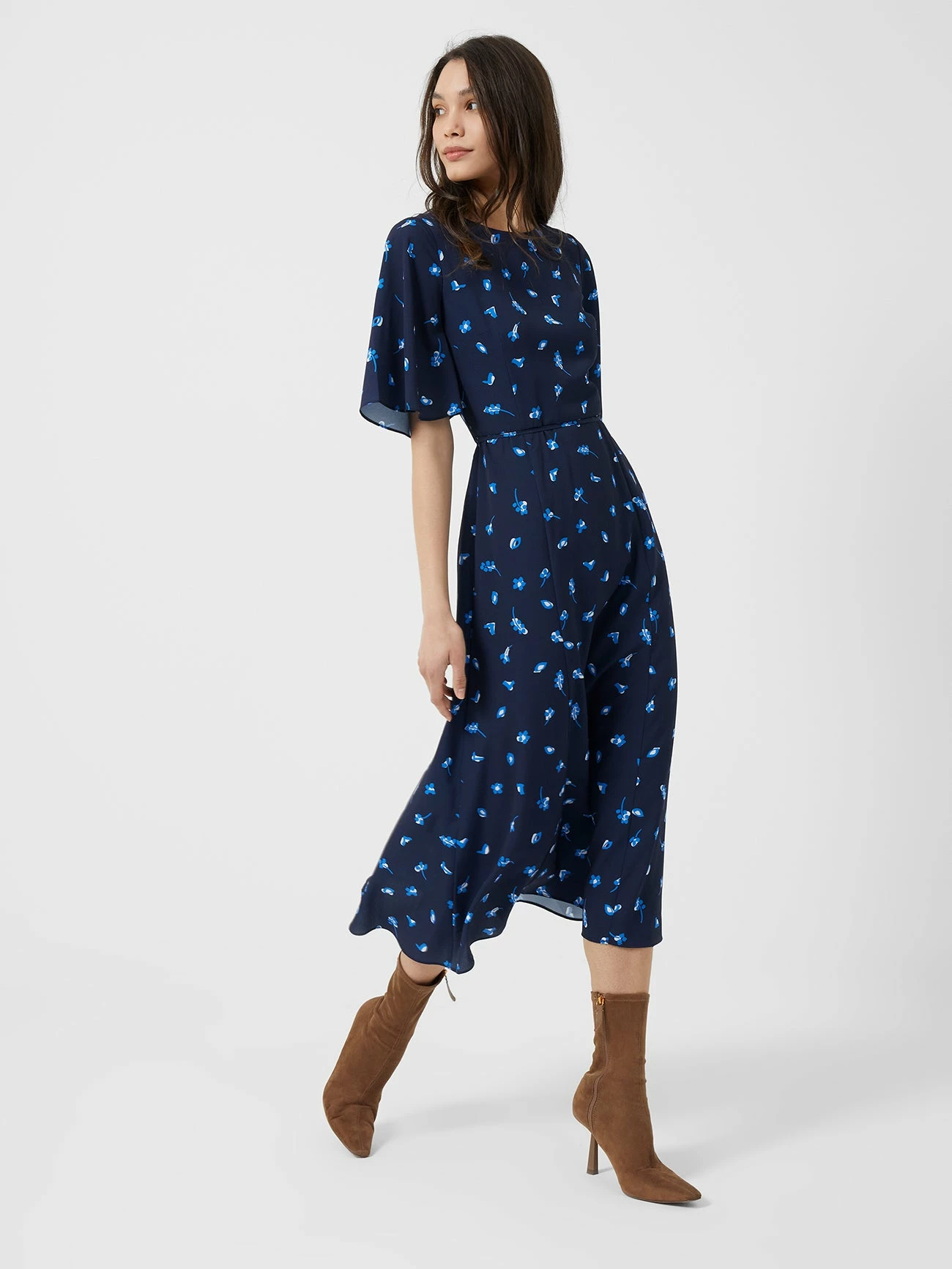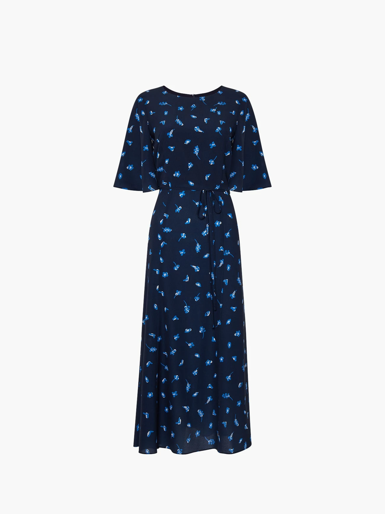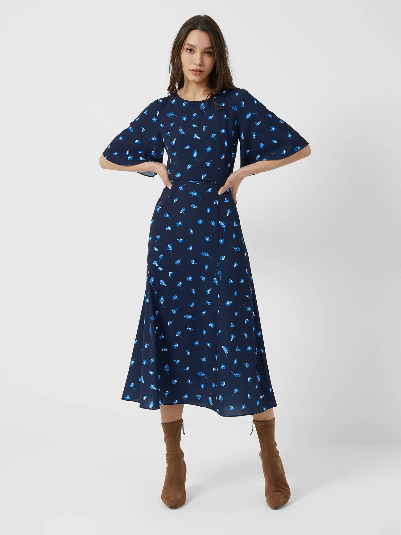 Stylish, sophisticated and complete with a summer sheer, make room for the Bhelle Verona Crepe Midi Dress in your wardrobe. This chic midi dress is fashioned with a playful floral print, adding an uplifting summer flair to the short flared sleeves, round neckline and self-tie waist belt.