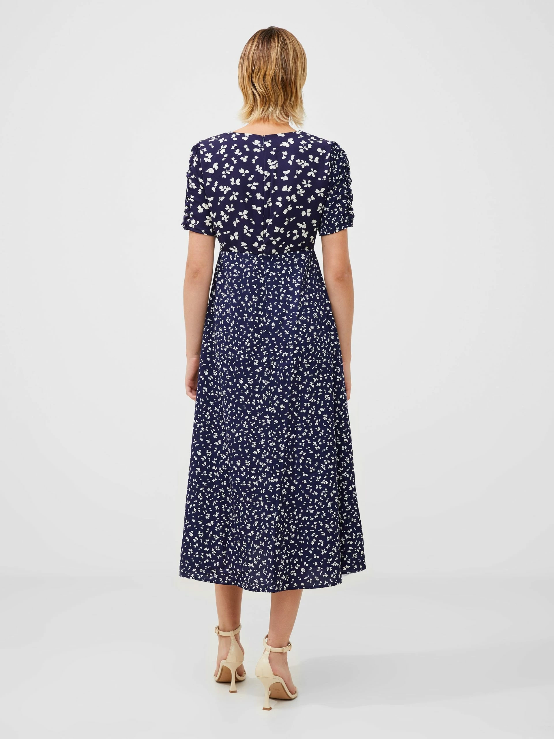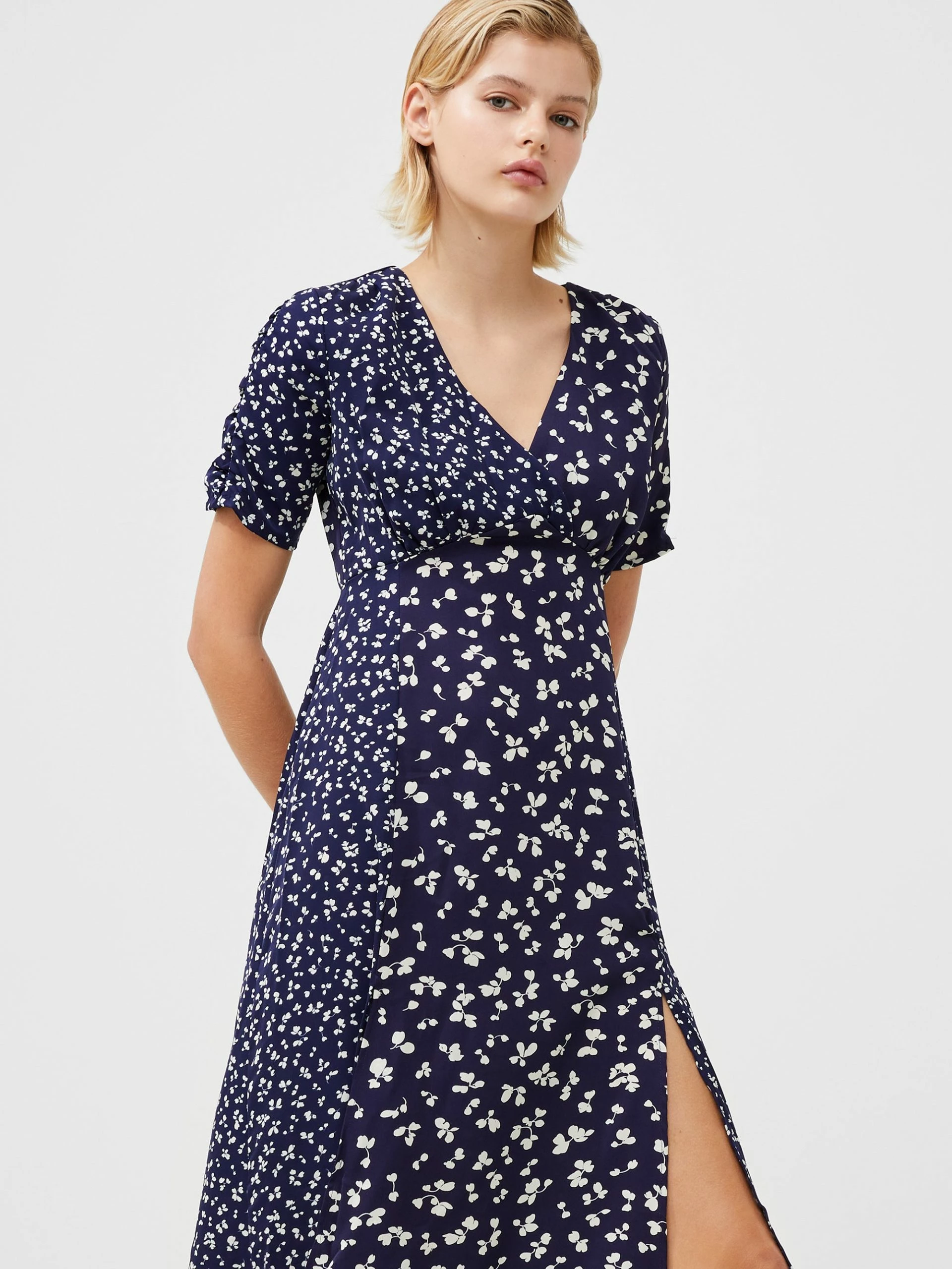 Our Bonita V-Neck Midi Dress is bonita by name and by nature. Dainty florals grace this sweet midi dress, with flattering features from short ruched sleeves and a wrap-over v-neckline to an empire waist and pair of lively side splits.