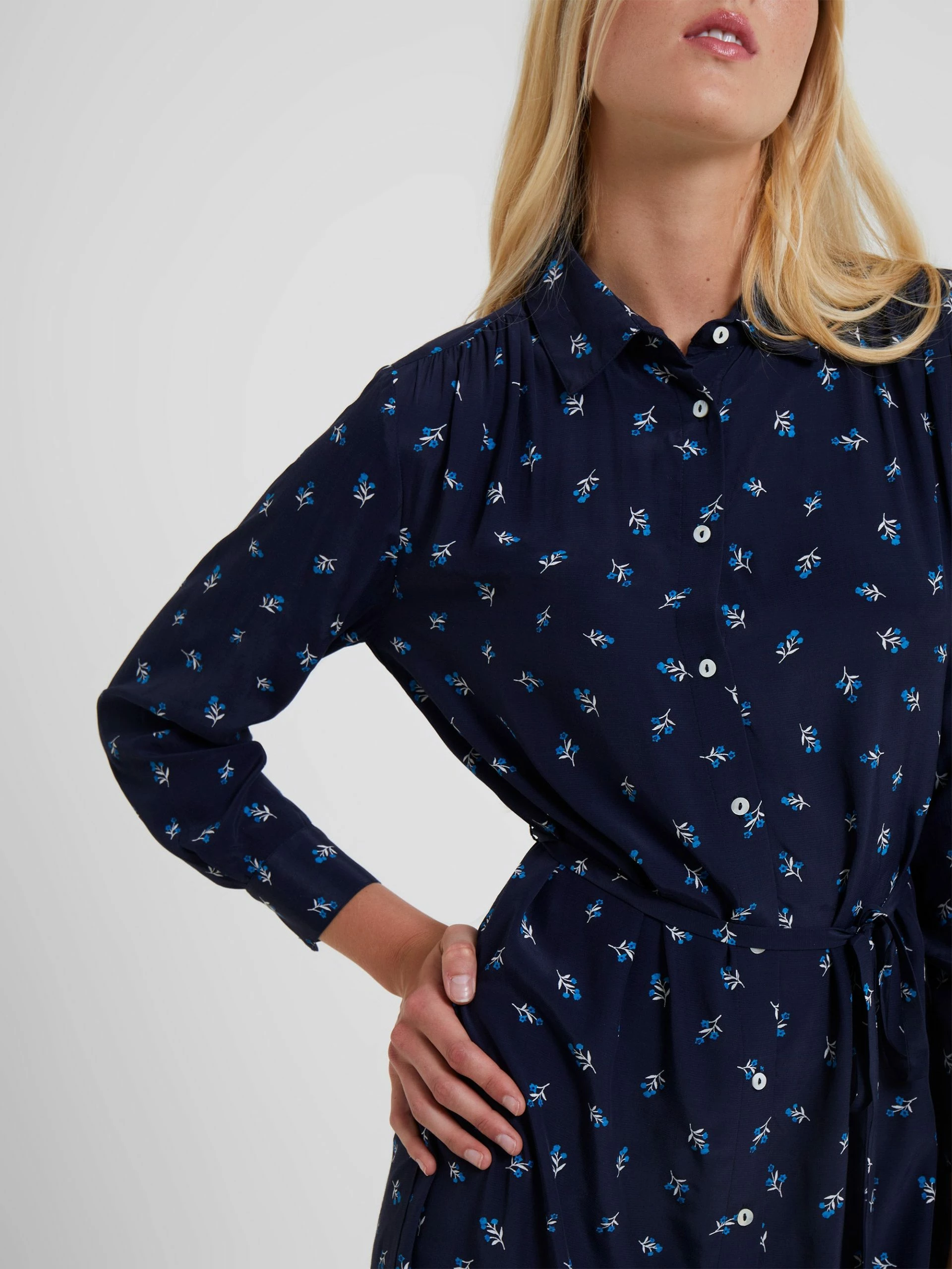 Our Cecilia Delphine Shirt Dress is a chic staple to take you from workdays to weekends. The classic shirt dress silhouette features a collar and button down fastening, whilst a ditsy flower pattern and co-ordinating self-tie belt bring this number together perfectly for spring.