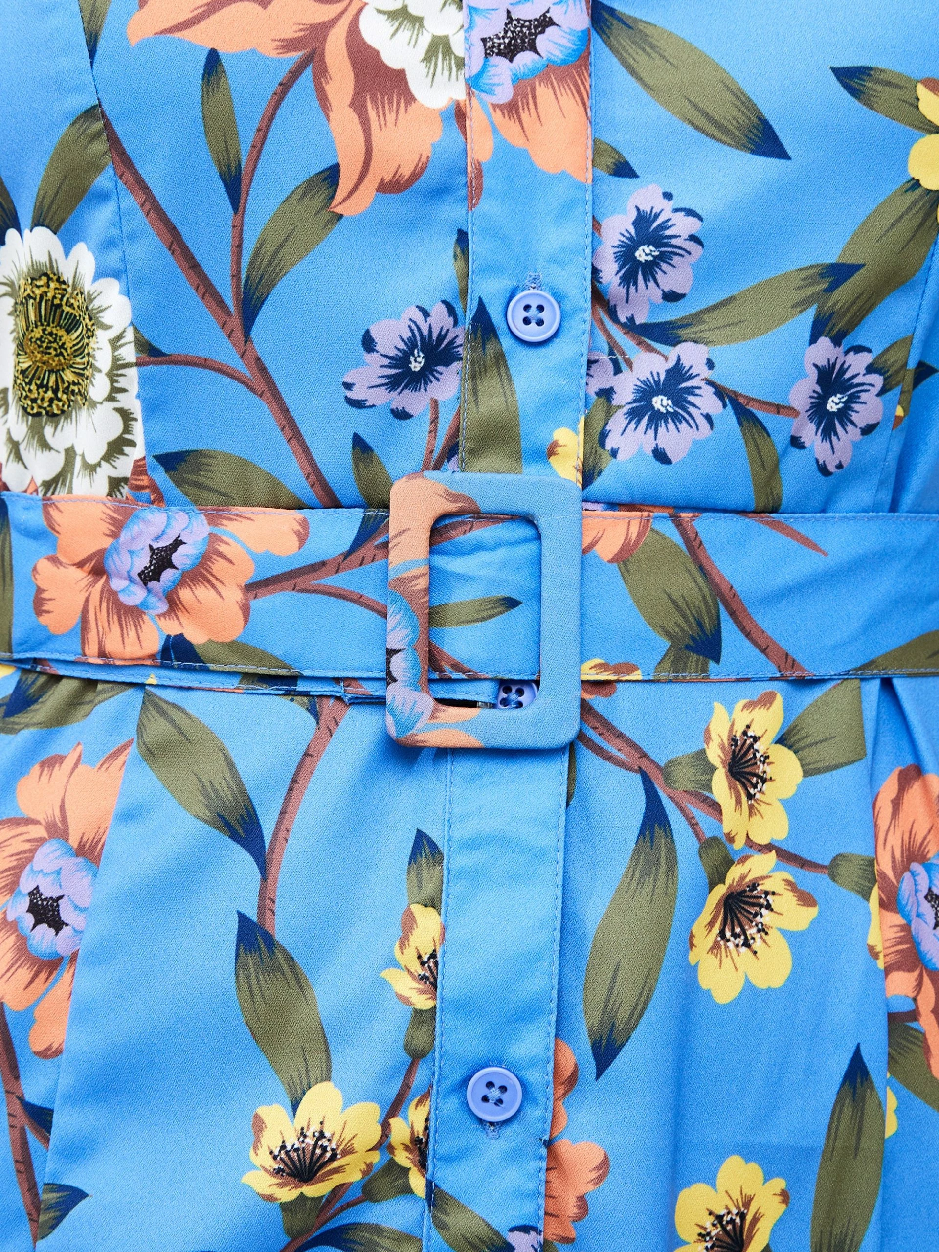 Elegant florals encompass our Floral Button-Through Belted Midi Dress making it, well, ground-breaking. From a v-neckline and flounce sleeves to the captivating print, this dress is a feminine favourite, fastened by buttons and starring in a flattering form with the addition of a matching buckled belt.