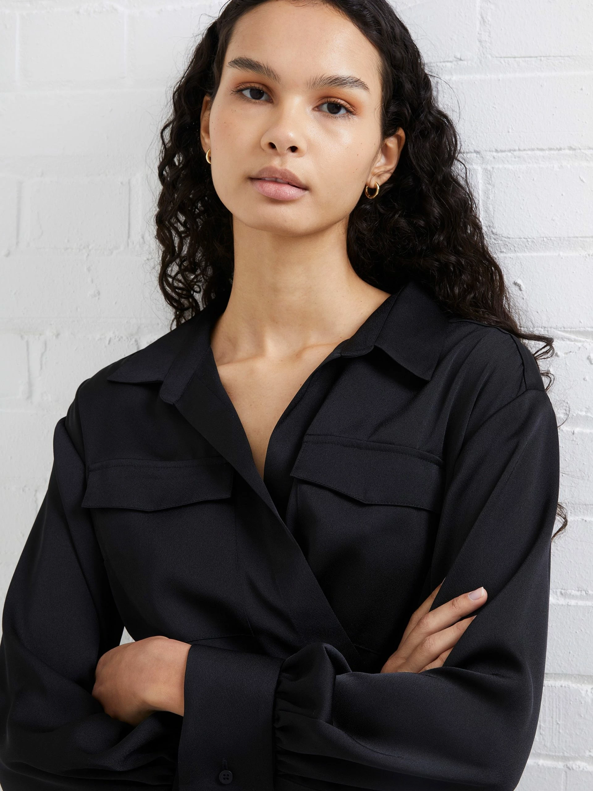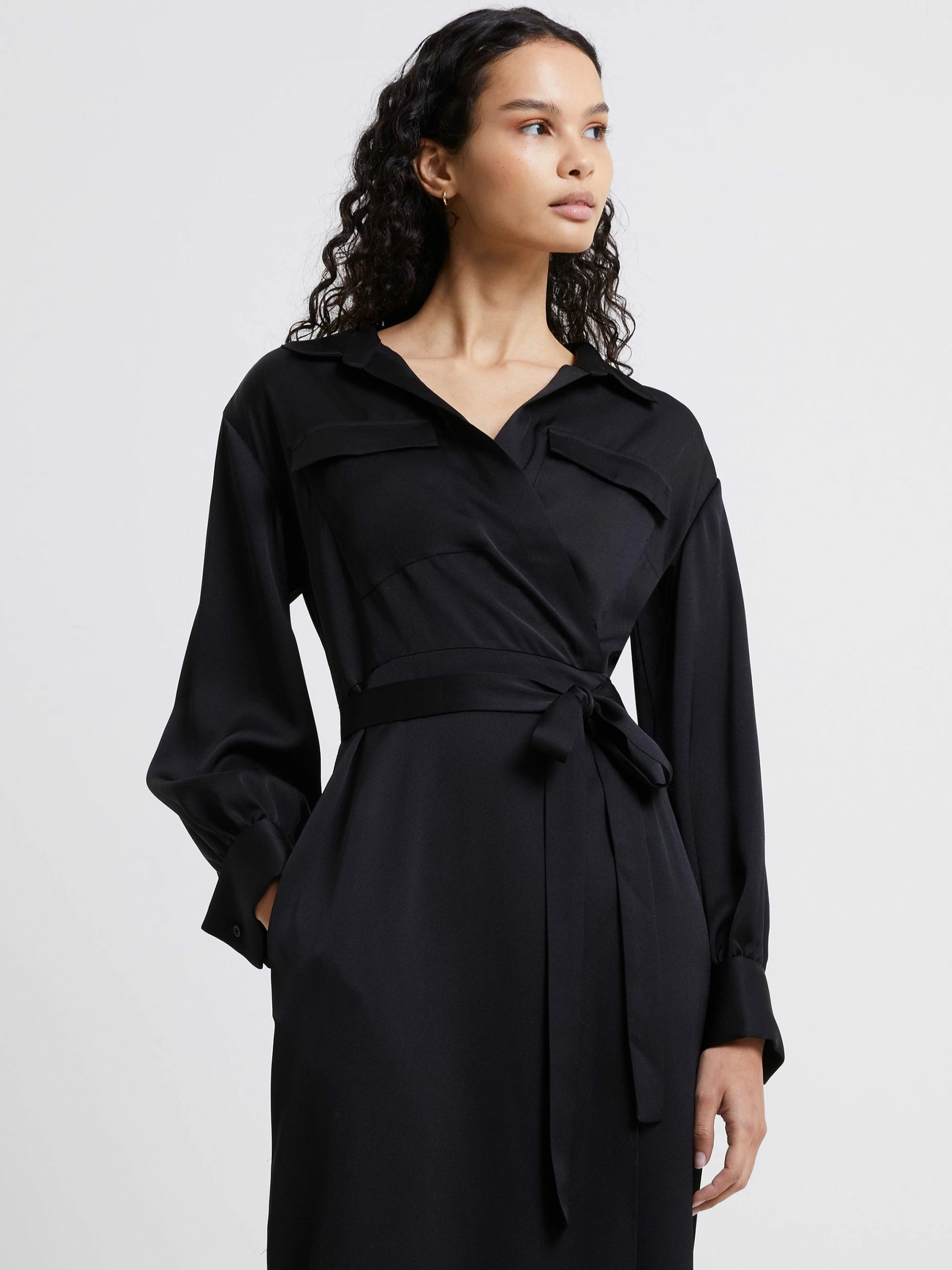 A flattering midi dress silhouette in a silky satin finish? It’s a dream-worthy crossover. Our Harlow Recycled Satin Crossover Midi Dress exudes elegance whilst maintaining understated chic, presenting a crossover design outlined by a refined collar and long sleeves, partnered with a pair of breast pockets, and drawn together with a self-tie belt.