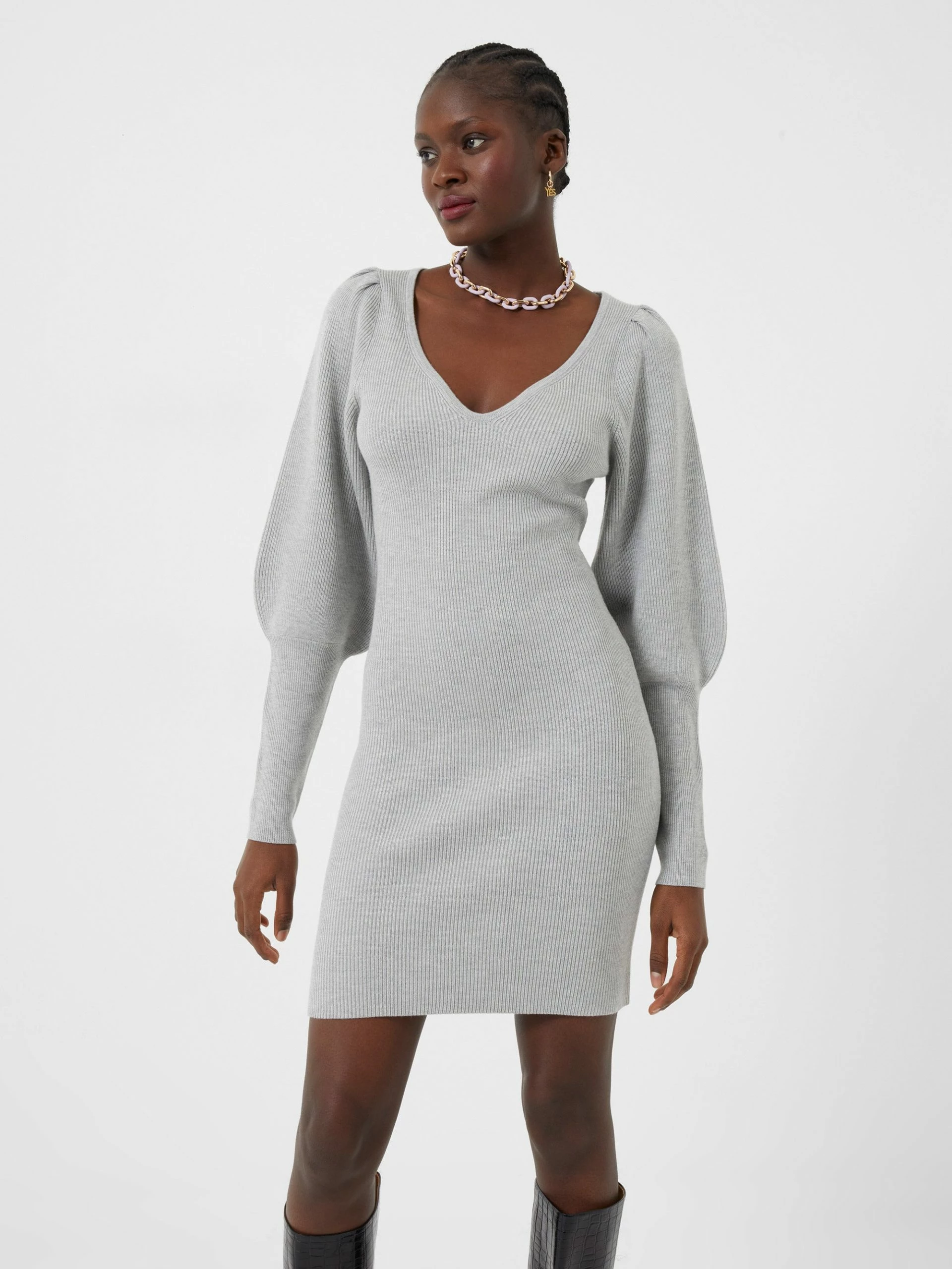 The buzz for our Lydia Knit Balloon Sleeve Mini Dress is blowing up. This dress falls to a mini length in a soft knit construction, boasting a v-neckline and long balloon sleeves with volume.