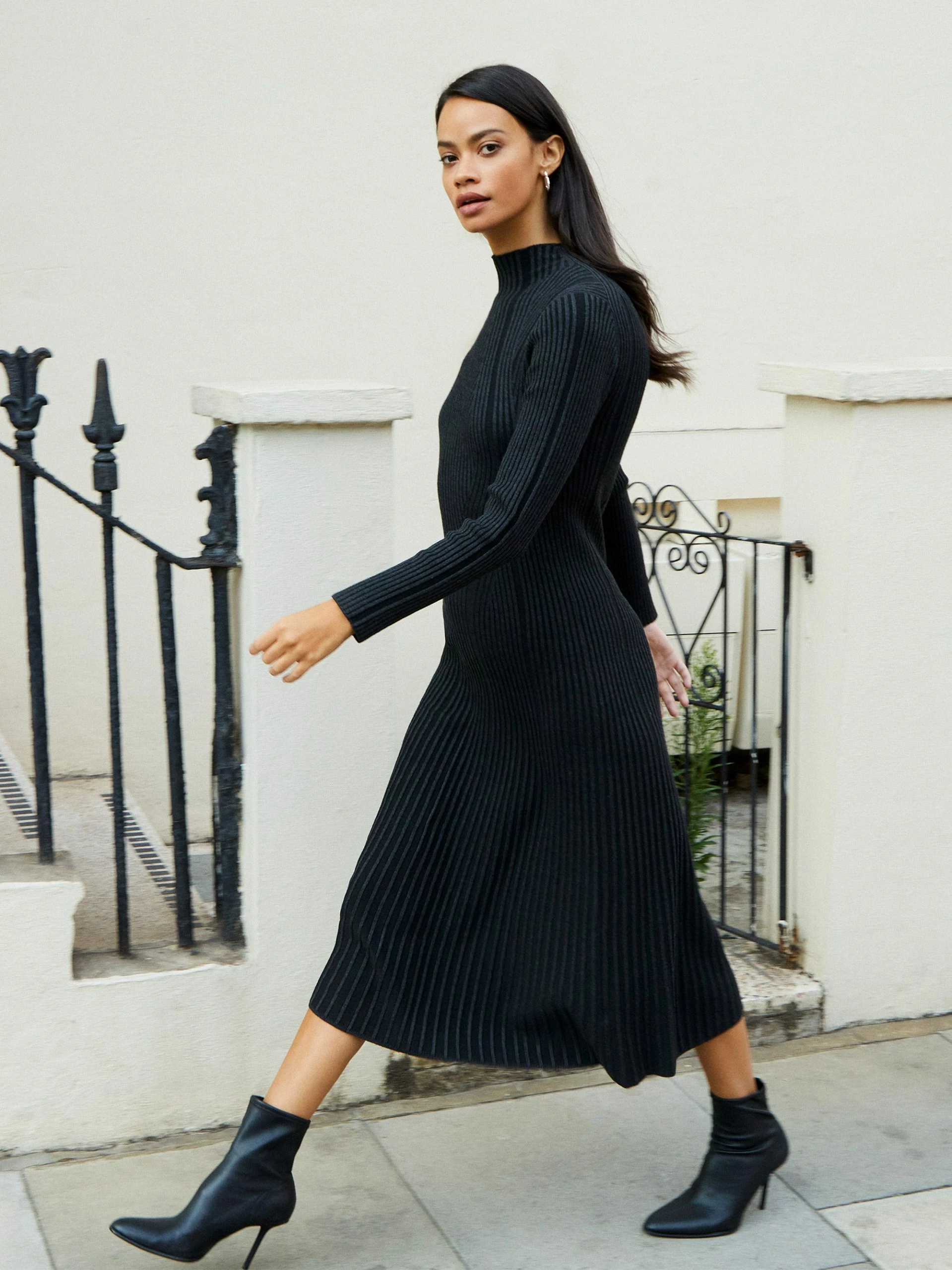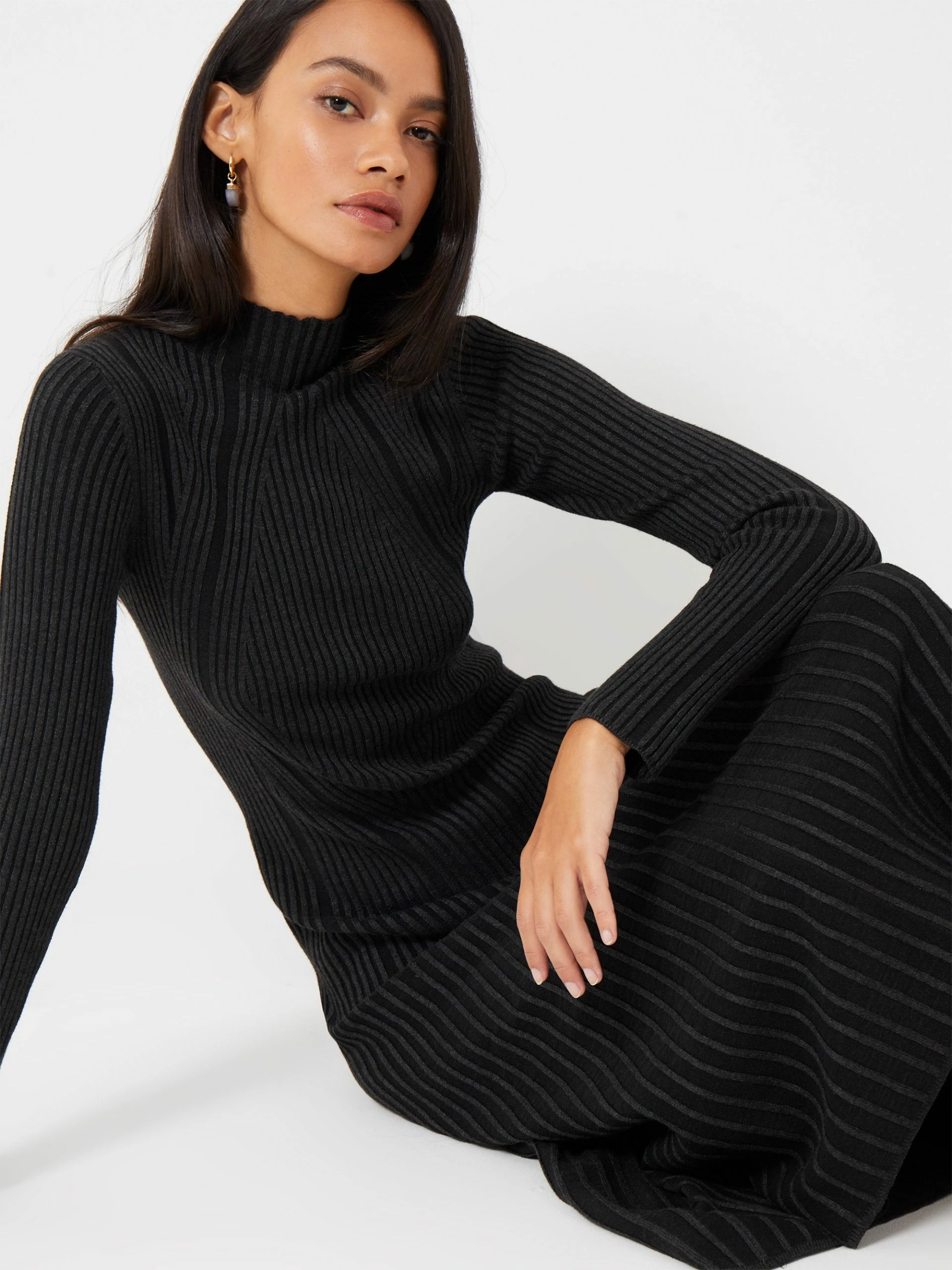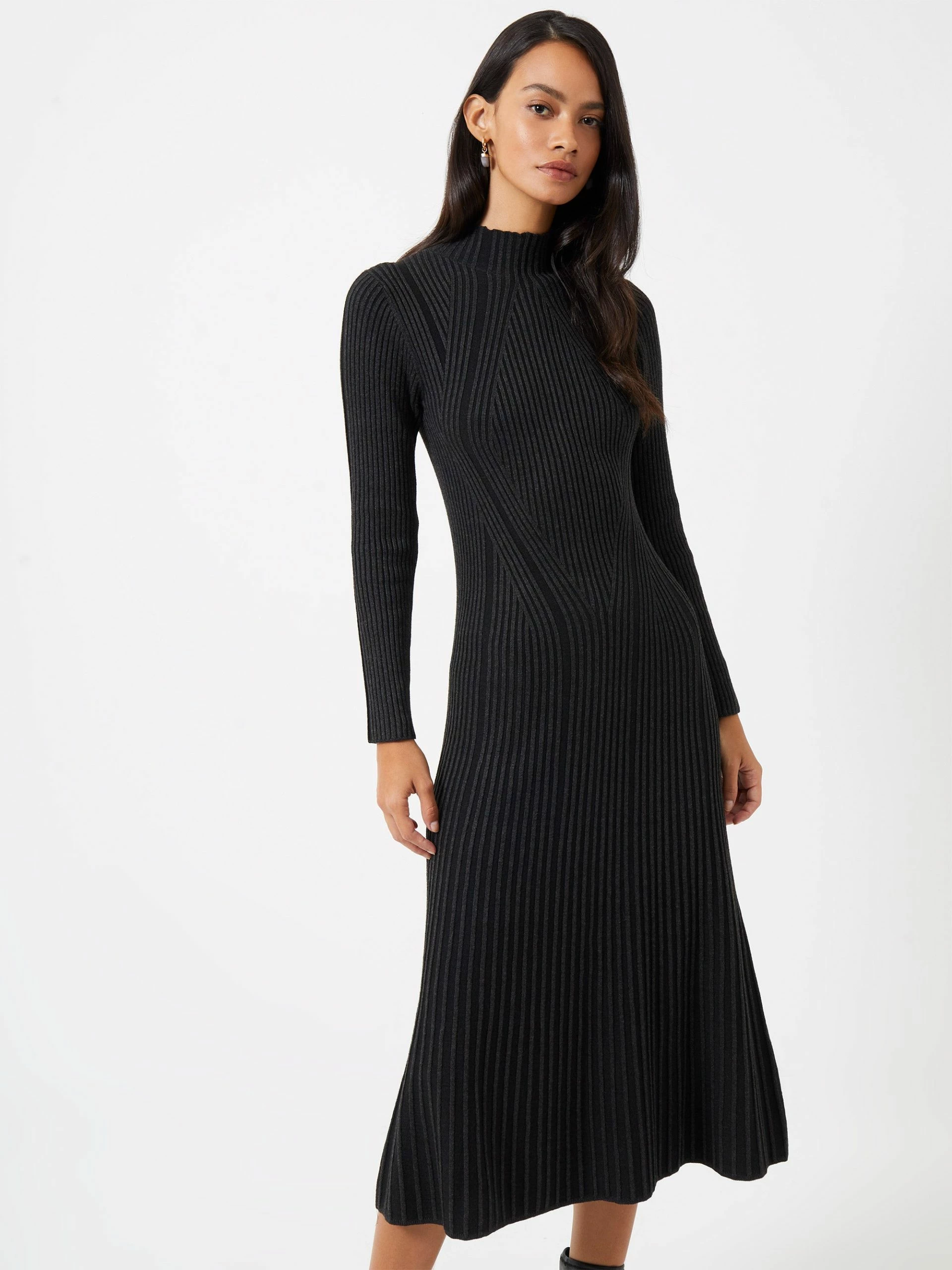It’s no illusion, our Mari Rib Illusion Midi Dress really is as stand-out style. In a sophisticated high neck and long sleeved silhouette, this midi dress revamps its ribbed texture to show-off a decorative shaped design worth dreaming about. A flattering and fashionable AW22 favourite here at French Connection.