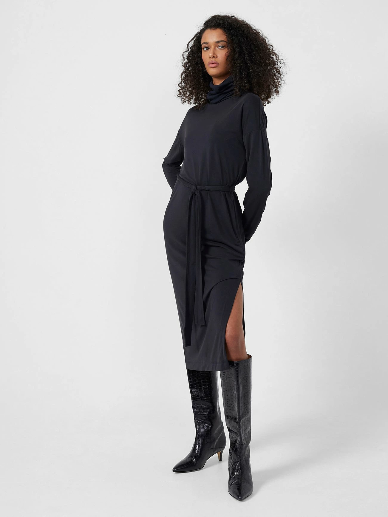 Roll up, roll up – your new go-to dress for the season is here. Our Renya Roll Neck Midi Dress perfectly fills the gap between everyday and evening, with the cooler days and nights in its sight with a roll neck, long sleeves and flattering self-tie belt – plus you can’t forget the cherry on-top, its playful side split.