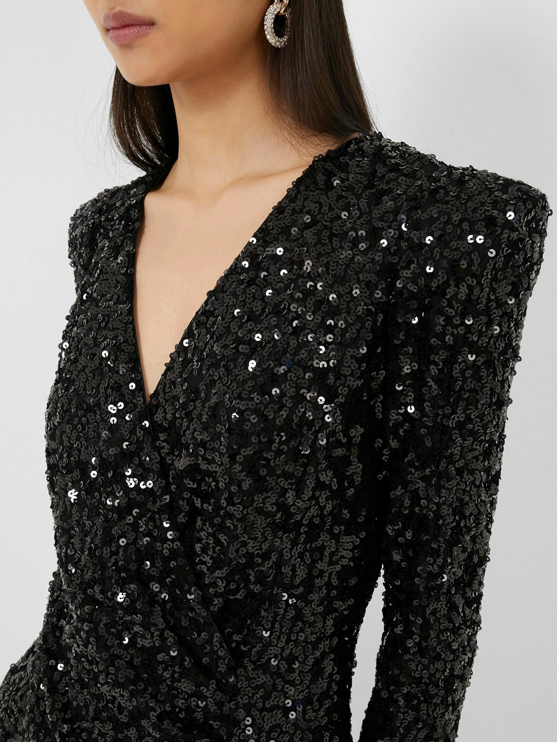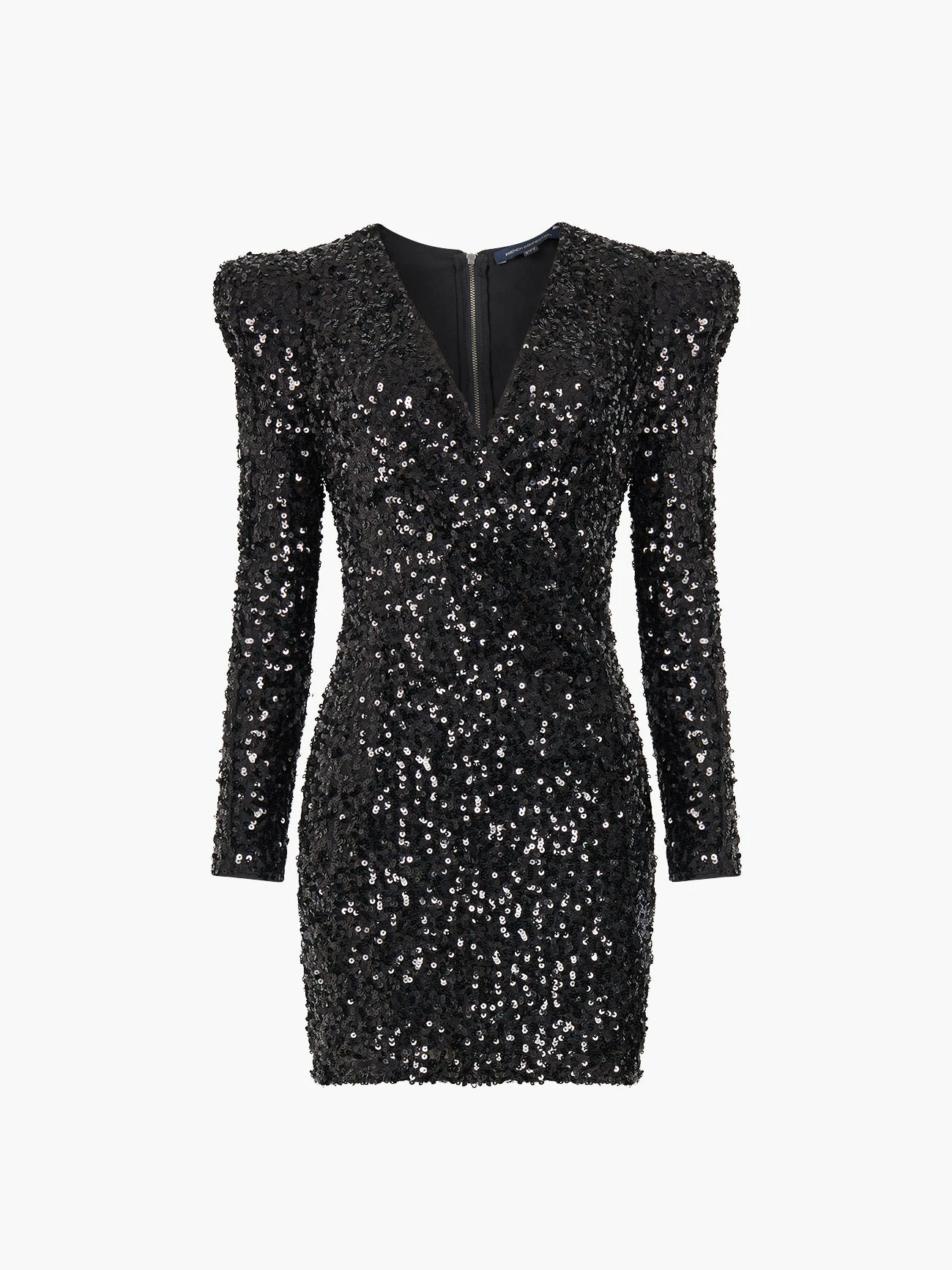 Make a statement with our Samantha Sequins V-Neck Mini Dress. Catching the light with every movement, this little black dress is a sparkler, with shimmering sequins gracing its mini length silhouette complete with pointed structured shoulders, a v-neckline and exposed back zip fastening. A show-stopping style destined to capture attention.