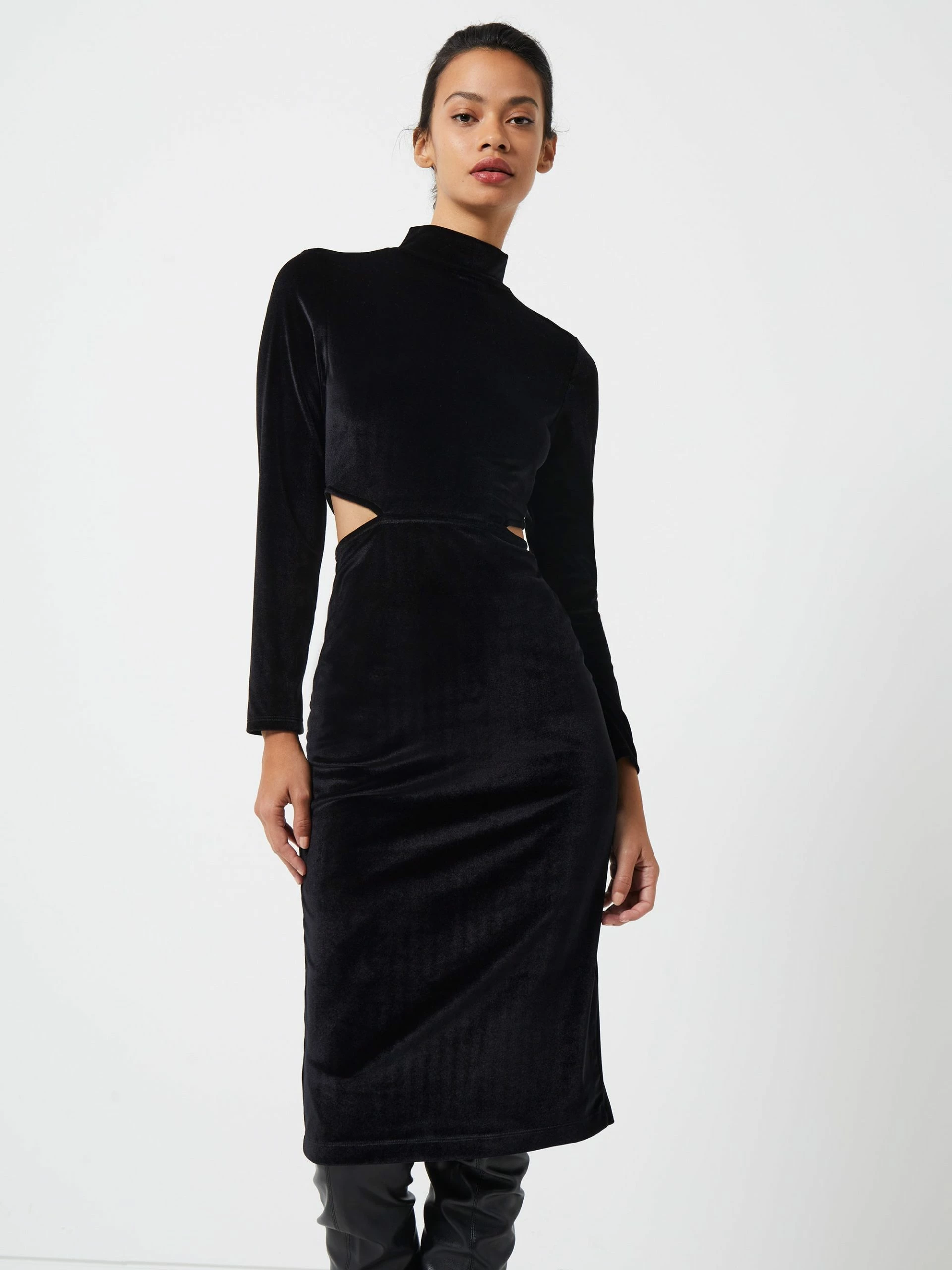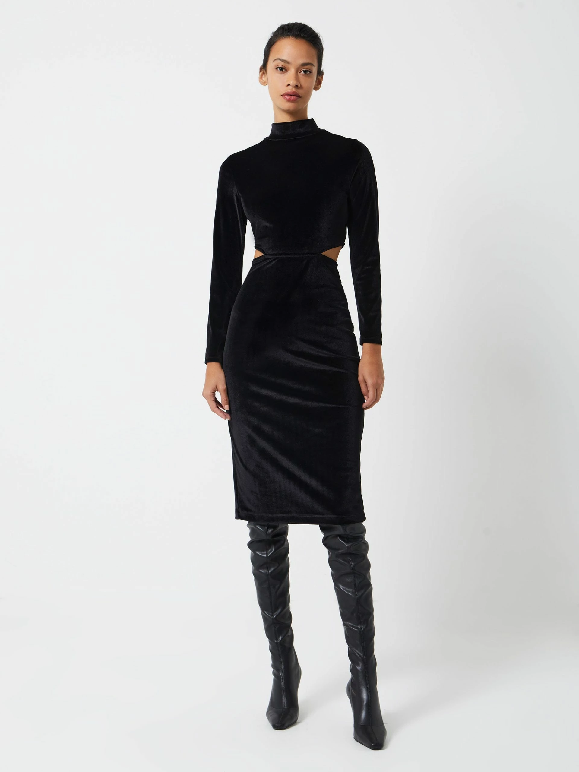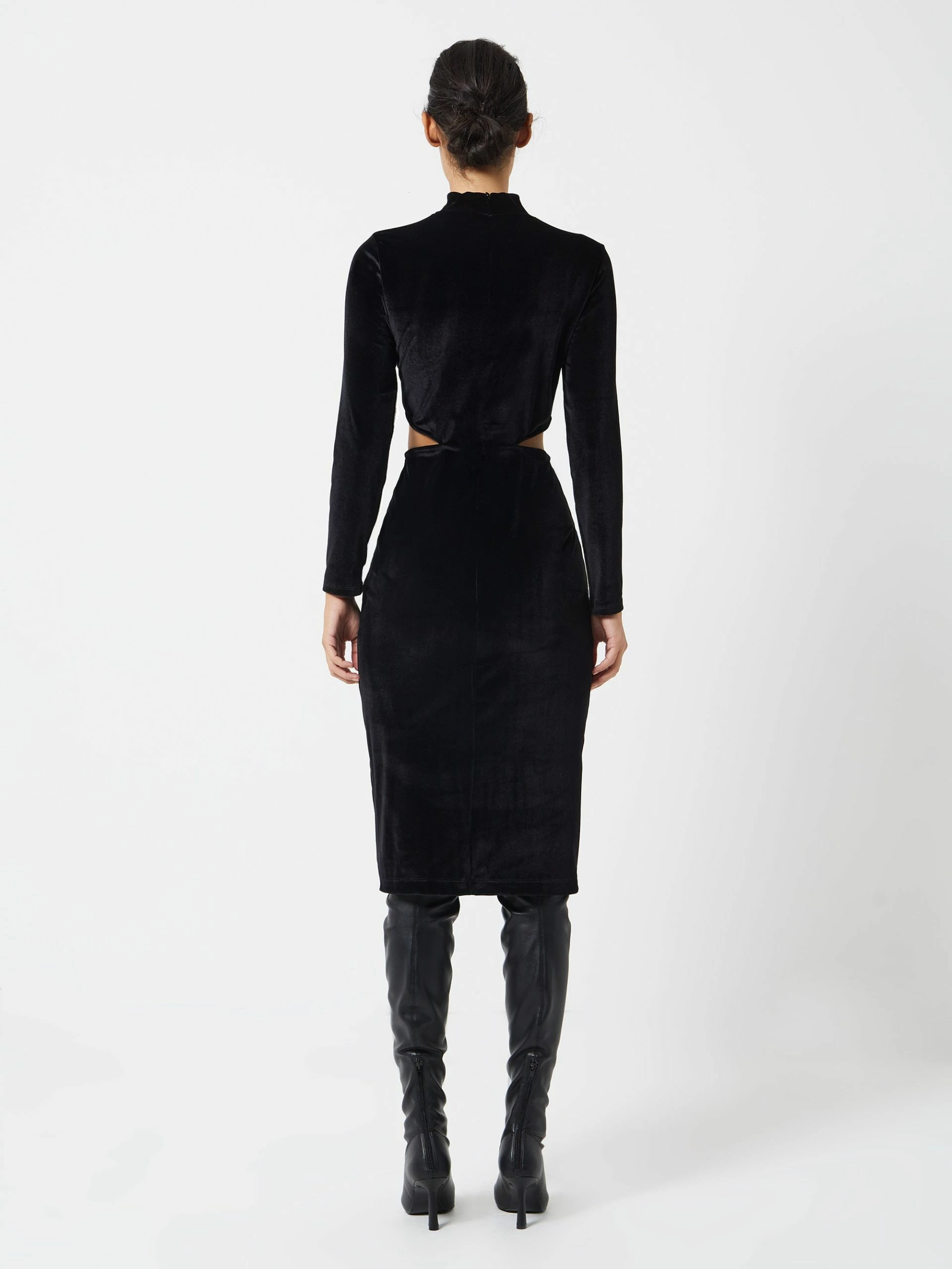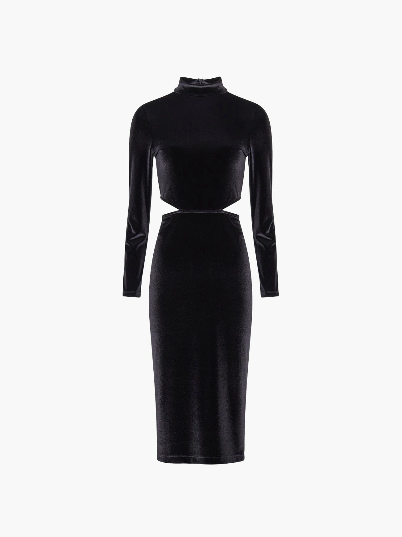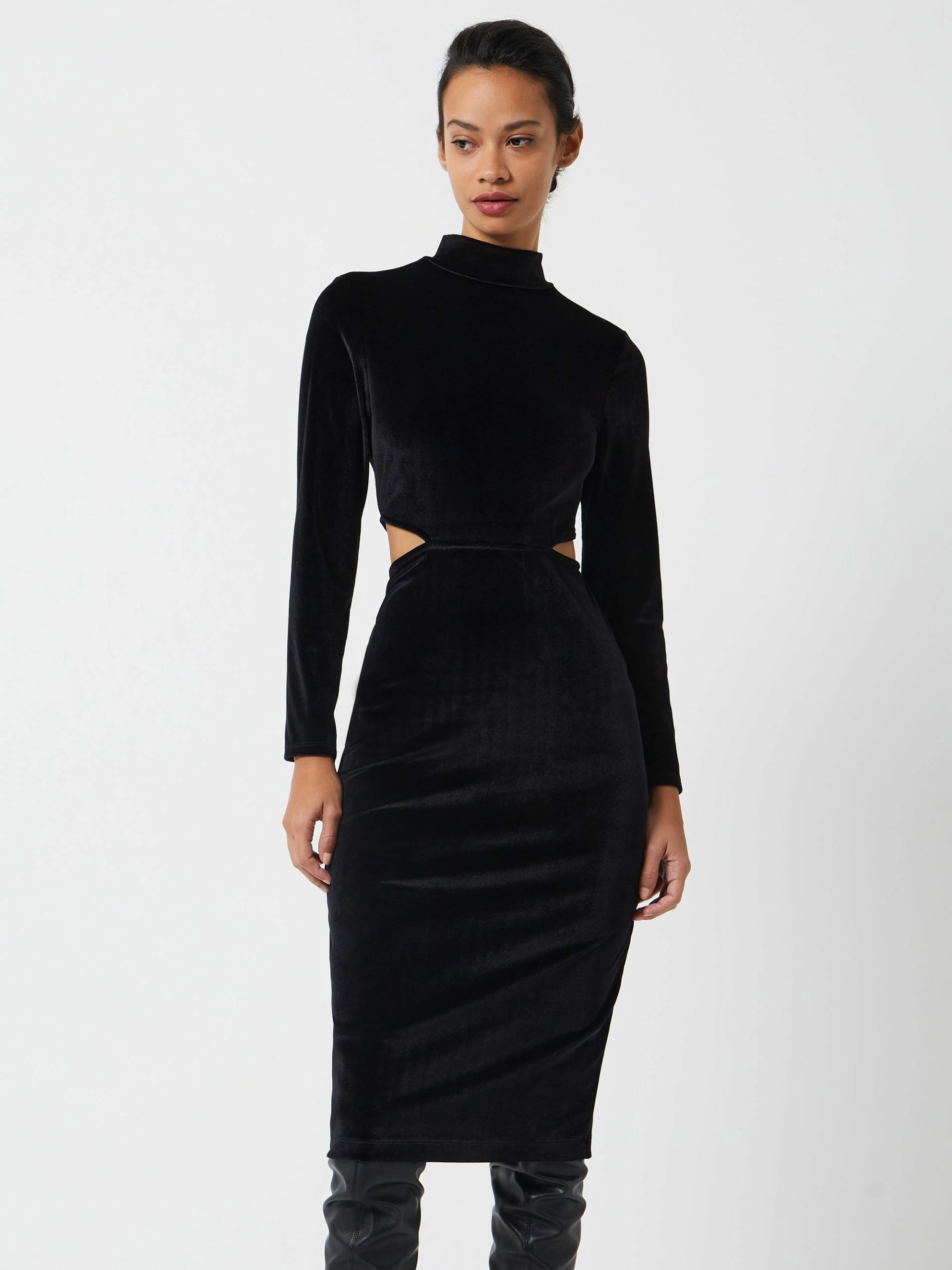 Drape yourself in luxurious velvet with a modern edge in our Sula Velvet Jersey Cut Out Dress. A sophisticated mock neck and long sleeved silhouette stands in its soft sheen finish, whilst a pair of symmetrical waist cut outs add a modern and playful twist to the style, making it an ideal choice for seasonal celebrations.