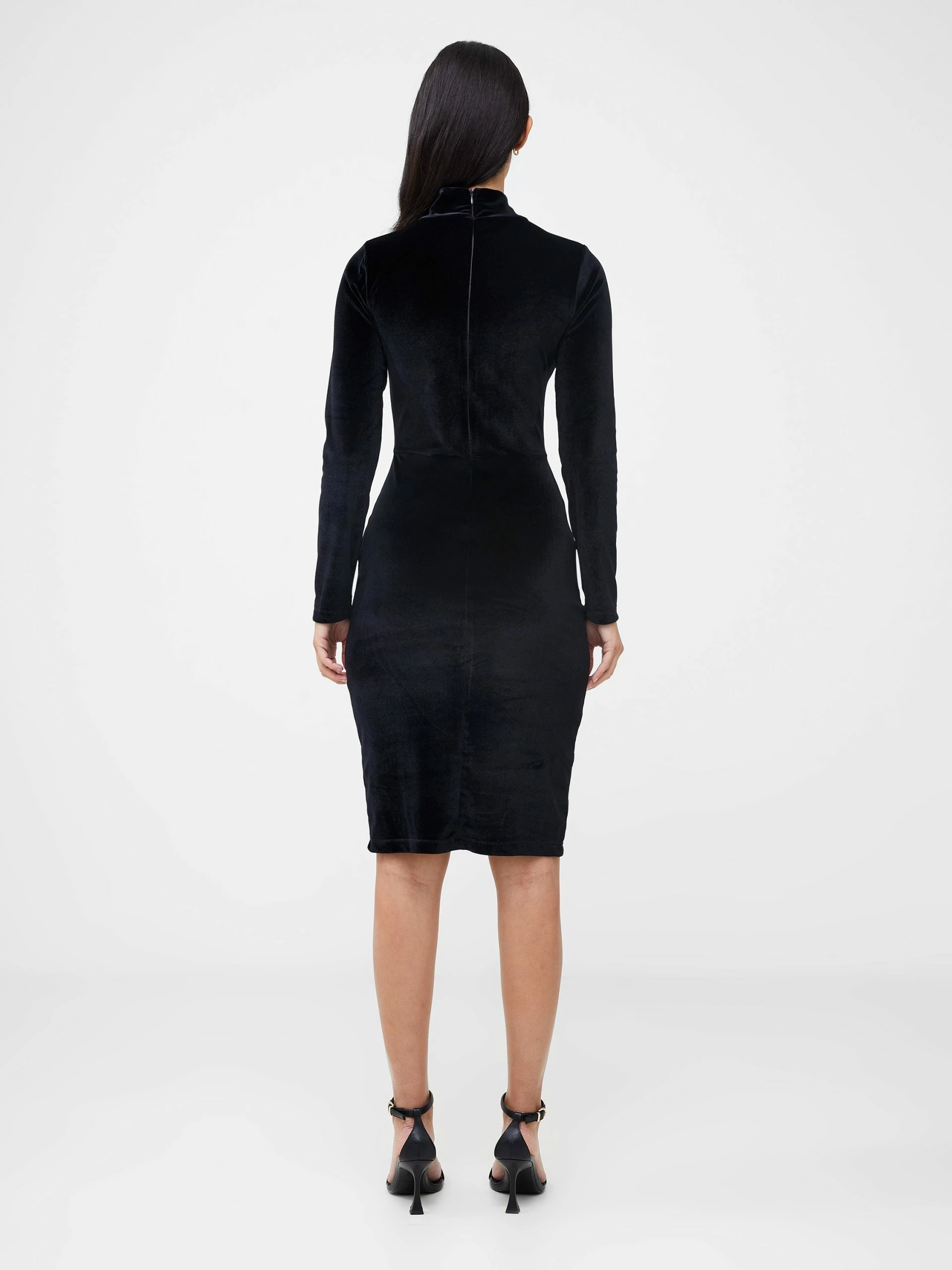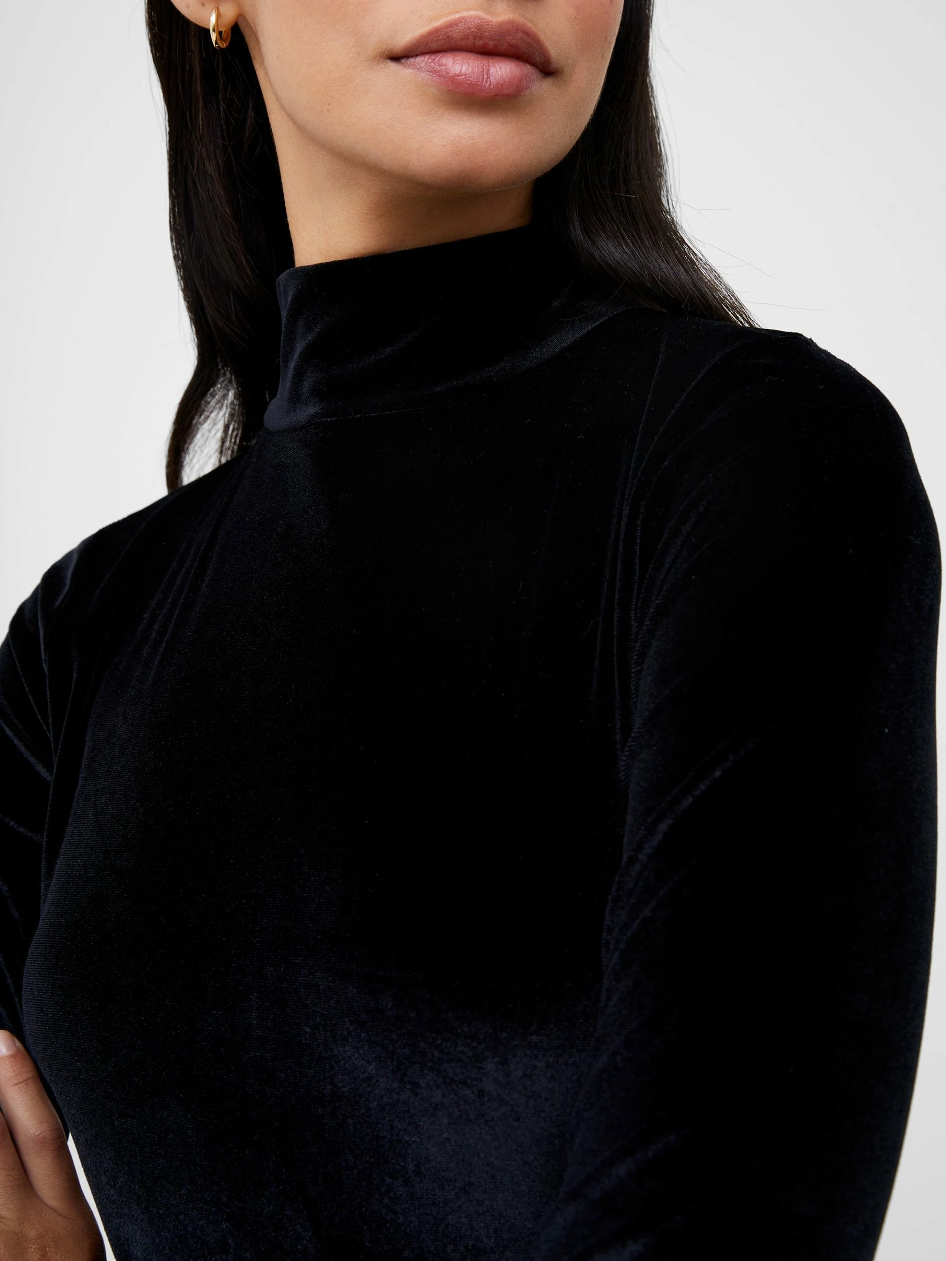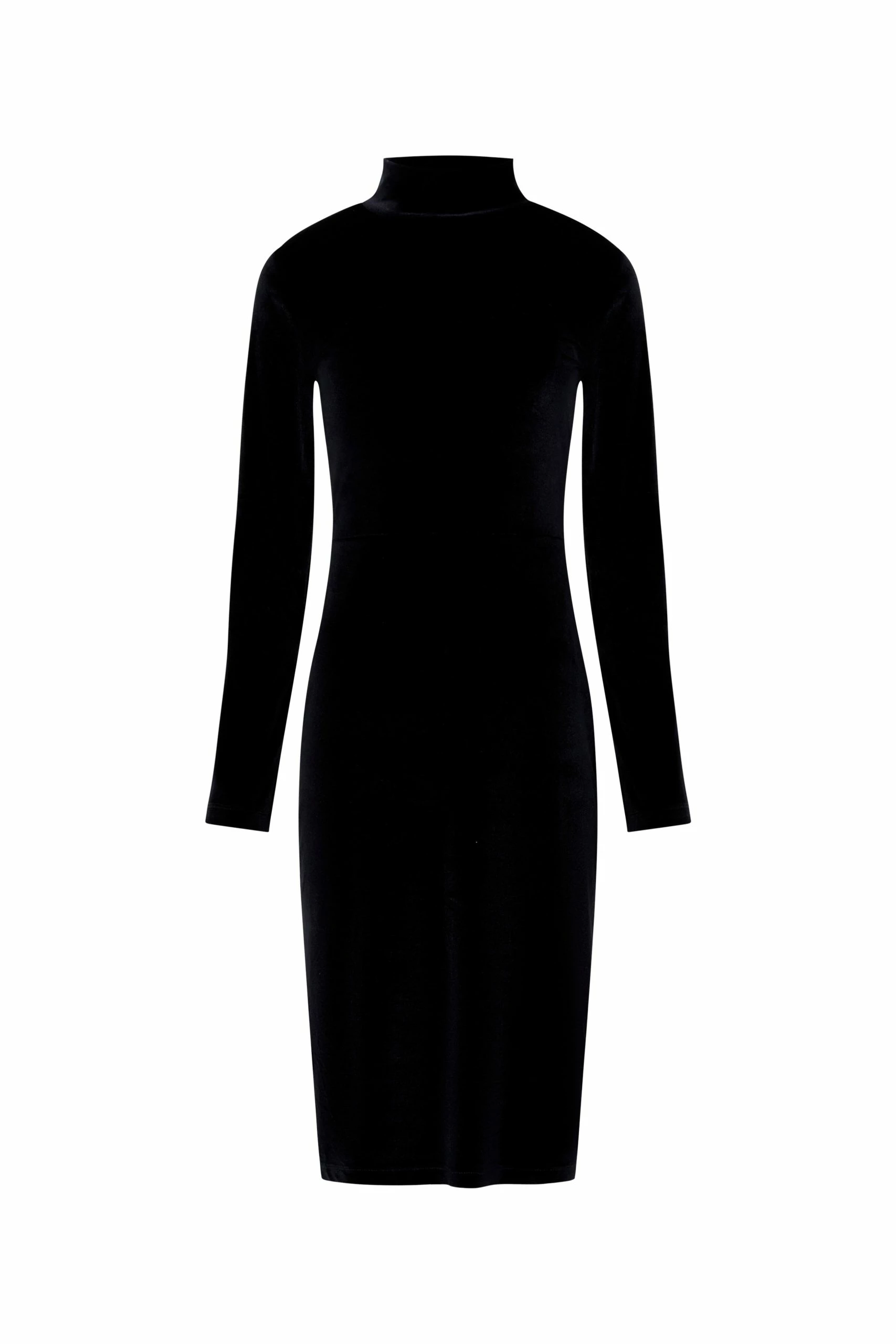 Our Sula Velvet Jersey Dress is a velvet dream. This little black dress makes for an effortless en vogue ensemble, with its soft and sheen finish body featuring a high neckline and long sleeves, ready to be worn with earrings and heels.